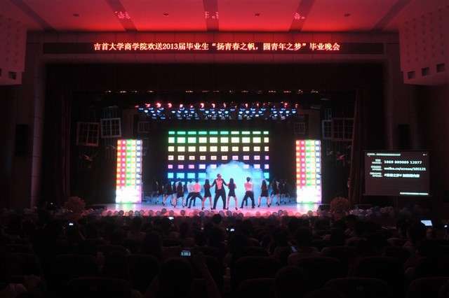 6月5日晚,我院“扬青春之帆,圆青年之梦” 2013届毕业晚会在砂子坳校区演奏厅上演,我校正校级督导李克纲、学工部部长田筱鸿、校团委书记周华忠、校素质教育中心副主任李超、校关工委常务副主任汤人翰及学院所有在家领导与09级毕业生共同观看了本次晚会。