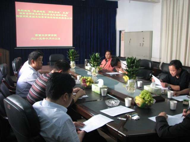 - 2013年10月12日下午,民族地区“两民企业”发展湖南省研究生培养创新基地兼职导师、湘西州民委副主任覃章胜于XK星空体育会议室为我院师生作了一堂题为“‘两民企业’现状、发展及思考”的讲精彩座。讲座由院党总支书记张生强主持,学校教务处处长冷志明、院党总支副书记钟高峥、副院长彭耿、李政忙、院工会主席张寒阳以及我院部分青年教师、硕士研究生参加并进行了讨论。