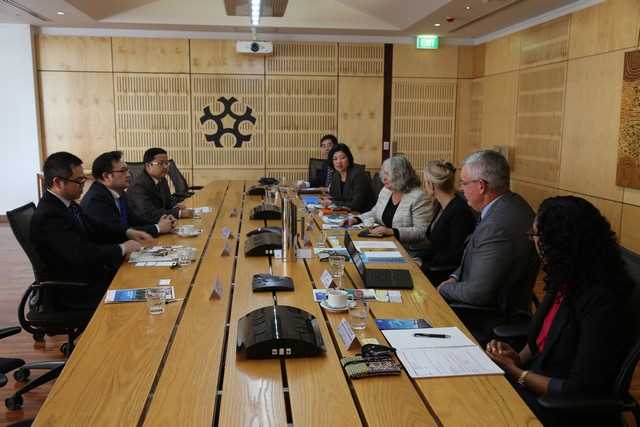 在堪培拉大学,曹晓鲜一行得到了堪培拉大学副校长李荣玉等的热情接待,李荣玉副校长对曹晓鲜副书记一行的到来表示热烈欢迎,并介绍了堪培拉大学的基本情况。曹晓鲜对堪培拉大学的热情接待和前期合作工作表示感谢;从办学历史、办学规模、办学层次、办学成绩和社会影响等方面介绍了我校的整体情况;说明了双方办学的共同点及合作的重大意义。随后,双方就XK星空体育工商管理、会计学两个专业学分互认协议相关内容进行了深入探讨,曹晓鲜与李荣玉分别代表两校在协议书上签字。会谈结束后,曹晓鲜一行在堪培拉大学相关部门负责人的陪同下参观了学生活动中心、学生食堂、XK星空体育、艺术设计学院等。在堪培拉国立大学和悉尼大学,曹晓鲜一行分别参观了学校图书馆、教室、案例讨论室、实验室机房等。