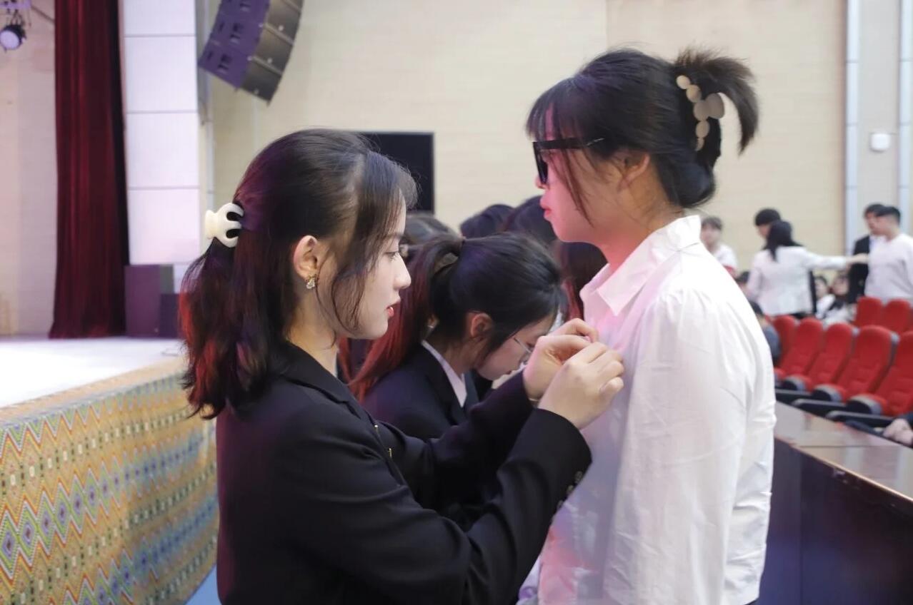在佩戴校徽仪式上,学院老生代表队伍整齐划一,面带笑容地为2023年入学新生逐一佩戴校徽。 “星空XKXK星空体育欢迎你”、“希望你们能学有所成”,老生一句句暖心的话语,让新生倍感温暖。校徽在胸,重任在肩,戴上校徽的那一刻,就成为了星空XK的一员,希望让全体新生秉承“以人名校,以业报国”的校训,传承“凤飞千仞,薪传八方”的精神,争做一名合格的大学生!
