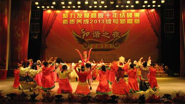 12月23日晚,我院在砂子坳校区演奏厅举行了以“聚力发展商院十年结硕果,素质养成2013续写新篇章”为主题的2013年“和谐之夜”元旦文艺晚会。副校长李克纲、科技处处长王兆峰、研究生处副处长蒋才芳、党委组织部周琴、退休教师石维海、石维贵以及我院领导、全院教职工和学生代表应邀出席了晚会。