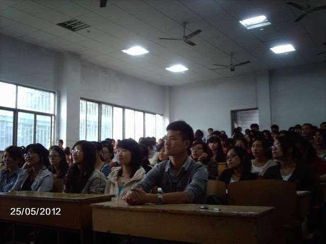 5月25日下午,原经管系主任、离休教师李泽南应邀在第三栋教学楼3002教室为我院2012届毕业生党员上了一堂以“牢记入党誓词,以不变应万变”为主题的党课。院总支成员、学工办主任胡锦湘以及2012届全体毕业生党员参与了本次活动。