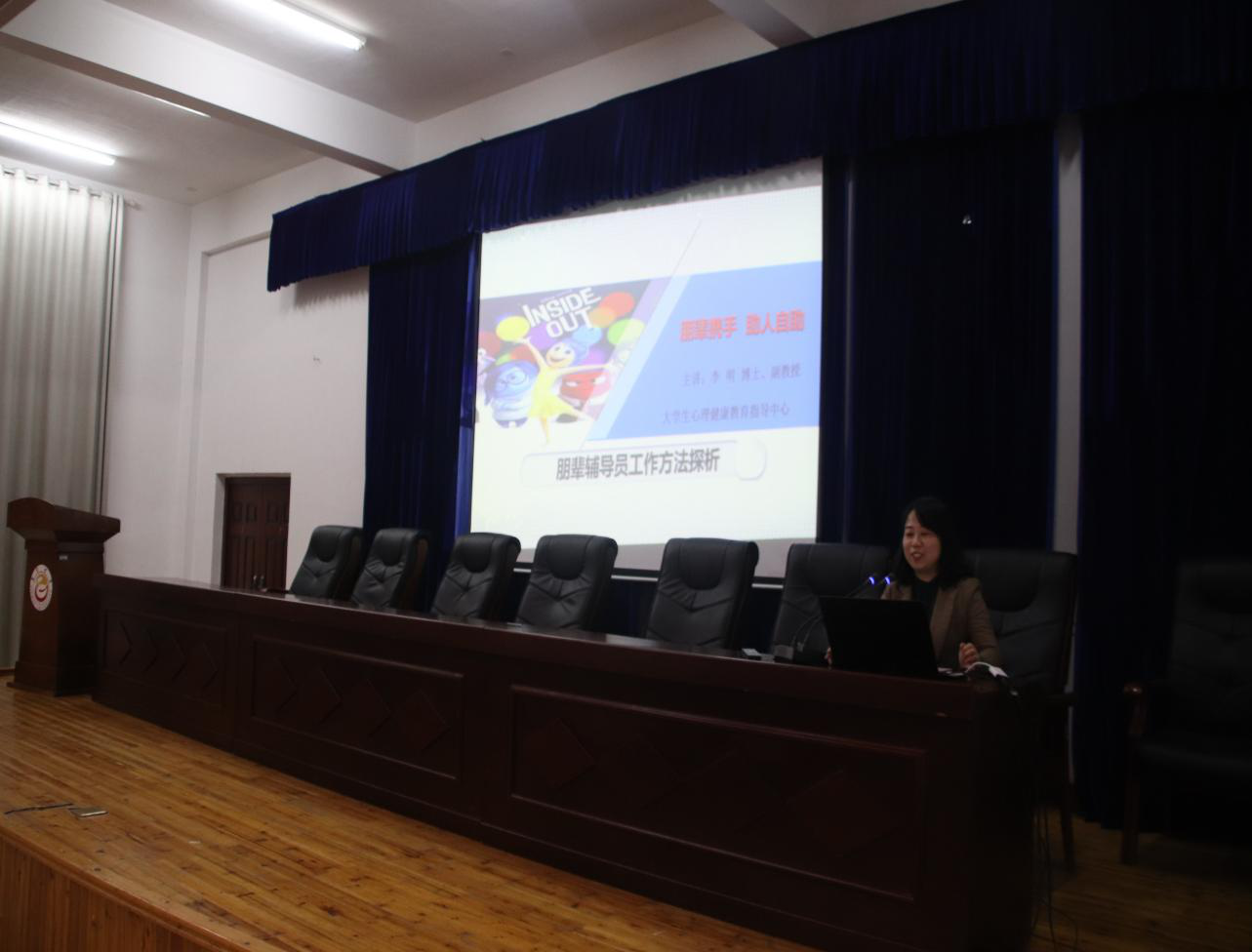 为不断充实基层心理援助与危机干预力量,完善学校心理健康教育工作体系及学生心理危机预防与干预机制,以便有效做好学生心理健康问题预防工作,10月26日晚,我院在校工会三楼会议室举办朋辈辅导员培训讲座。讲座邀请了星空XK心里健康教育中心主任、中山大学博士李明副教授作为主讲嘉宾。