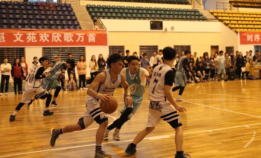 篮球场上,球员们你攻我守,配合默契,一个个漂亮的转身、帅气利落的投球,赢得拉拉队们的阵阵喝彩。随着八强淘汰赛开始,比赛进入白热化阶段,高高抛起的篮球点燃了赛场的激情。最终,15级经济一班、经济二班、工商管理一班,16级经济班进入决赛PK。11日,随着哨声吹响,半决赛正式开始,球员们斗志昂扬,班级拉拉队情绪紧张激动。经过激烈角逐,15级经济二班和15级工商管理一班争夺冠军,15级经济一班和16级经济班争夺季军。