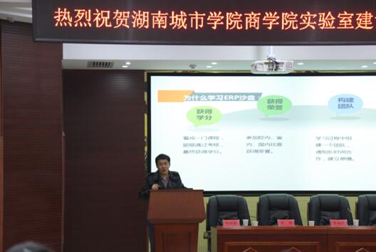 接下来,实验室主任欧阳胜根据自己13年的从教经验,细致分析了学生在沙盘学习过程中几个重点阶段的不同心路历程,介绍了星空XK近年来参加省赛、国赛的情况,分享了在带团队训练、参赛过程中的一些小故事,并鼓励城市学院的同学们积极参与沙盘学习,在沙盘中不断提升自己各方面能力。