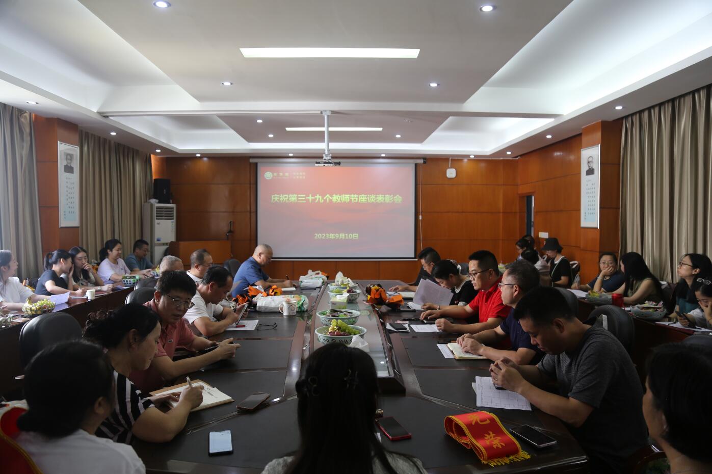 荣休仪式结束后,学院组织学院全体教职工在院会议室召开“庆祝第39个教师节表彰座谈会”。