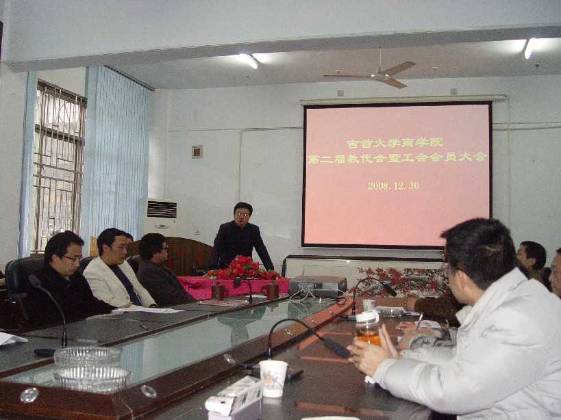 2008年12月30日下午,我院在院会议室召开第二届教代会暨工会会员大会。大会由学院工会主席钟高峥主持,学校工会办公室主任曾一凡代表学校工会对我院第二届教代会暨工会会员大会召开表示祝贺。