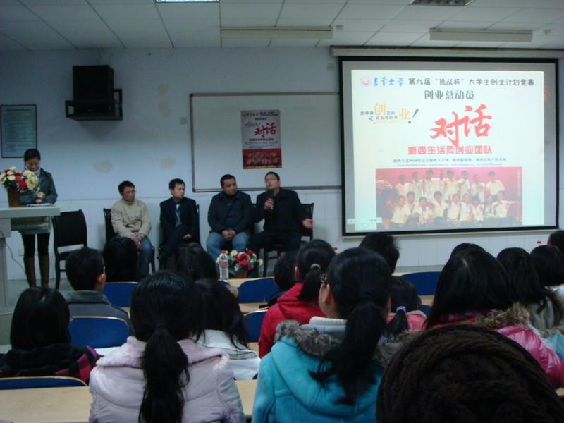 2009年12月11日晚,我院团总支在砂子坳校区举办“创业大赛赛前经验交流会暨动员大会”。本次交流会采取对话的方式,对话由范宇主持,并邀请了湘西生活网的四位主要负责人李跃华、邹武华、张杨、颜亮,XK星空体育团总支书记周琴等老师参加了大会。
