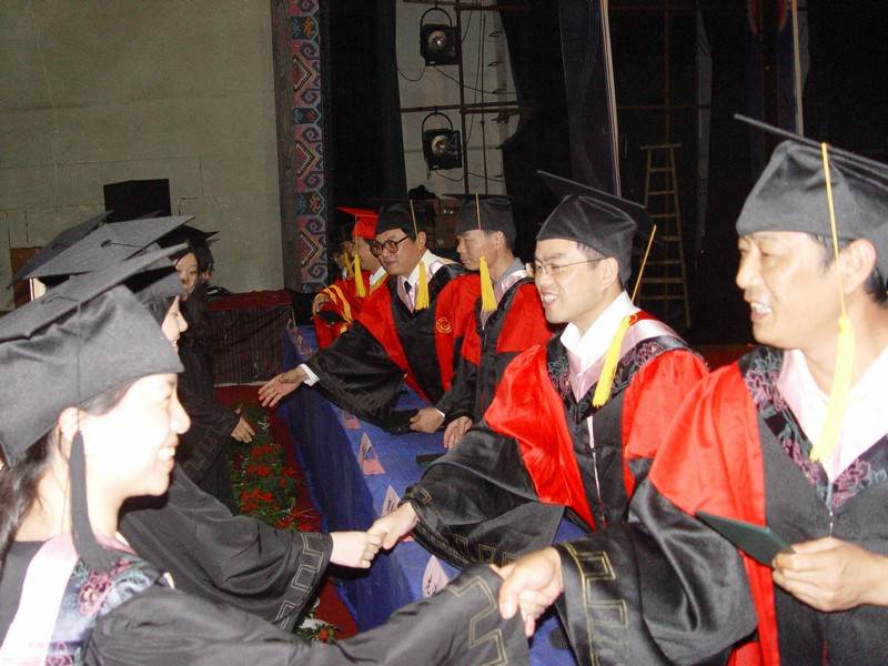 随后,学院副院长李政忙宣读学院2010届毕业生表彰决定。授予蒋微等43名同学为“2010届毕业生”、授予王赛等27名同学为“考研先进个人”、评定陈宝辉等42名同学所撰写的论文为“优秀论文”。紧接着进行了神圣的学位授予仪式。最后,全体毕业生以及老师在图书馆前坪合影留念。(牟丽云供稿)