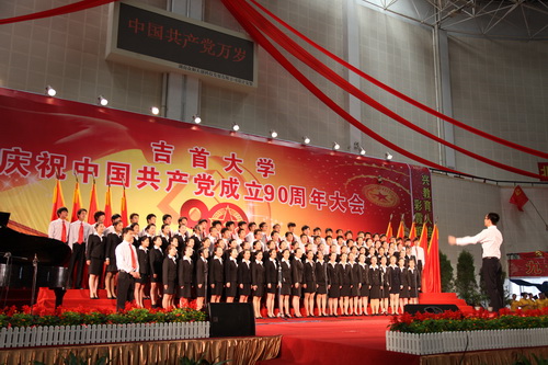 最后,在与会校领导的带领下,全体党员和师生齐唱气势恢宏的《国际歌》,我校建党90周年庆祝大会胜利落下帷幕。