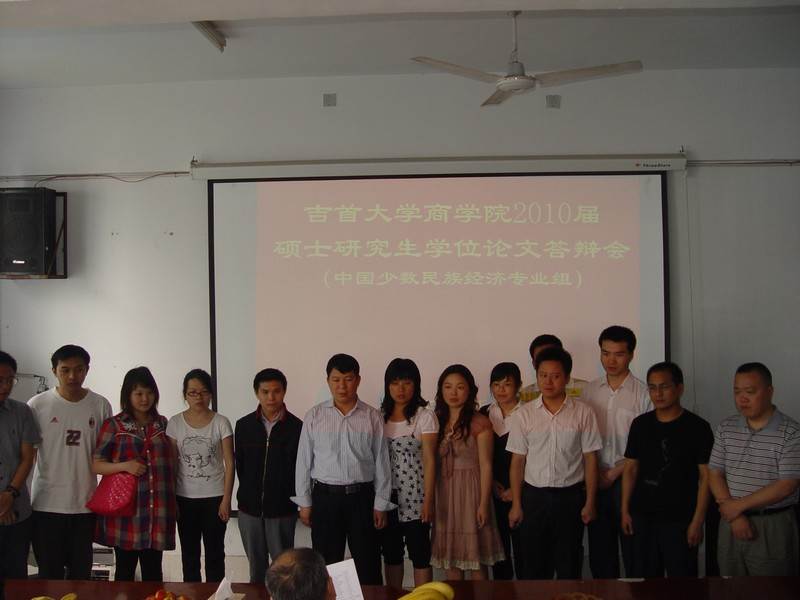 6 6 ,我院举行2010届硕士研究生毕业论文答辩会。此次答辩会共分两组进行,分别邀请了著名经济学家、中南大学博士生导师柳思维教授和湖南大学熊正德教授为答辩会主席,经过学生陈述、专家提问、学生回答、主席评议等环节,杨琴、刘芳等2007级工商管理、产业经济学、中国少数民族经济专业学生顺利通过了硕士毕业论文答辩。