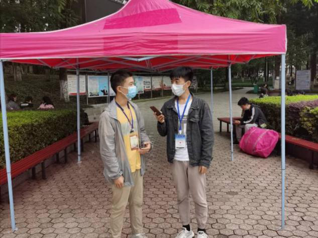 五点开始准备,在为志愿者安排好工作事宜后,就着手准备英语四级考试,考试过后,快马加鞭赶到老校区投入迎新工作中,这是2018级工商管理2班王志明。凌晨五点,立刻起身在新校集结,随后奔赴老校,这是2019级工商管理2班蔡书童。作为学长,他们有担当,他们冲在志愿者第一线。
