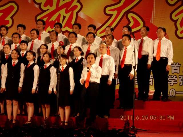 •     在比赛中,我院教师着装整齐,精神饱满,歌声洪亮。一首《团结就是力量》唱出了我院全体教职工团结奋进的气势,由李政忙副院长激情领唱的《我们走在大路上》更是唱出了我们对共产主义事业的热爱。