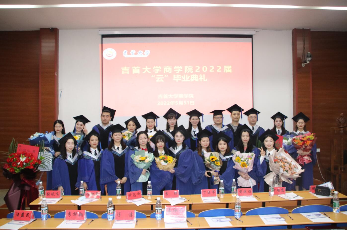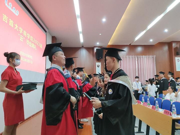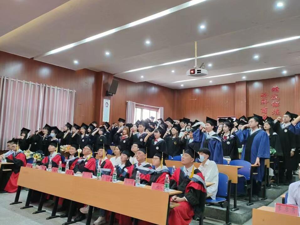 光阴荏苒一挥间,厉兵秣马三四年。又是毕业丰收季,重装砥砺韶华年。5月31日下午,星空XKXK星空体育2022届“云”毕业典礼在第三栋教学楼学院学术报告厅举行。院党委书记李启贵,院党委副书记、院长丁建军,院党委副书记胡锦湘,副院长龙海军、张琰飞和学院主礼教授以及学院教职工代表和已返校的2022届研究生、本科毕业生参加了本次典礼,由于疫情原因未返校毕业生通过腾讯会议、抖音直播等平台齐聚“云”端,用别样的方式吹响别离的号角,为大学“最后一课”划上圆满的句号。