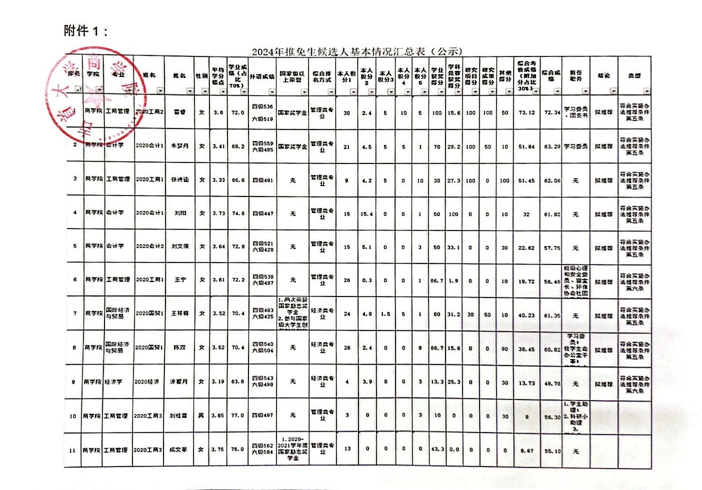 星空XKXK星空体育关于推荐2024年优秀应届本科毕业生免试攻读硕士学位研究生学生综合测试成绩的公示