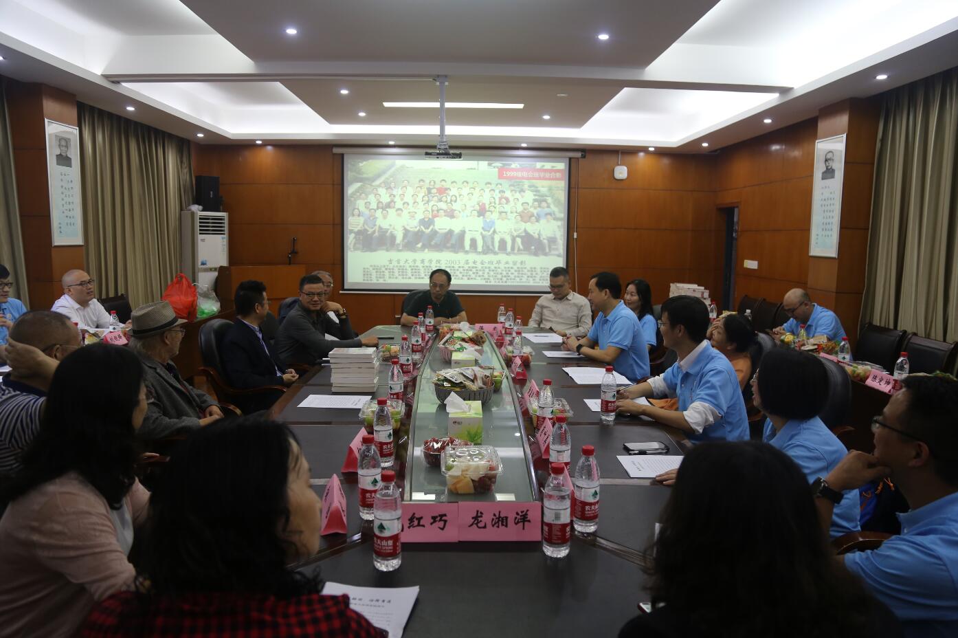 10月2日上午,99电会班返校聚会的校友们来到学院会议室,参加了一场特殊的“班会”——与学院领导老师座谈。院党委书记宋洁、院长丁建军、院校友会会长钟高峥等领导和99电会班两位班主任老师叶明霞、向光东以及曾经给99电会班上过课的部分老师莅临现场,与校友们亲切交流,再叙师生情谊。